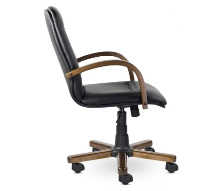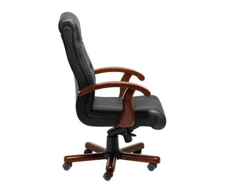 Кресло руководителя, обтянутое экокожей, находится сейчас на пике своего спроса. Это объясняется невысокой себестоимостью этого материала в сочетании с отличными пользовательскими качествами. Сидя на такой поверхности человек не испытывает перегрева, ведь экокожа способна создавать вентиляцию. В ее производстве используется натуральная, обычно хлопковая основа и на нее наносится полиуретановый слой, в котором сохраняются микропоры. Такая обивка безопасна для здоровья пользователя и приятна на ощупь, при этом за ней легко ухаживать, она не боится истираний и выгорания под воздействием солнца, а также устойчива к моющим веществам.