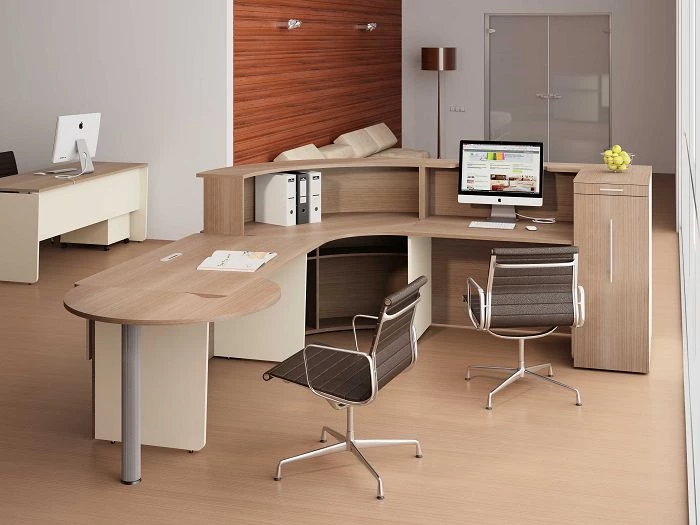 Офисы нового поколения выходят за рамки общепринятого и ломают стереотипы. Главное заблуждение – хочешь хорошее, плати много! Изготовленная из высококачественных материалов иностранного производства (ДСП класса Е1), имеющая модный дизайн и практичная в использовании, наша продукция представлена для вас по невысокой стоимости. Театр начинается с вешалки, а офис – с ресепшн. Обстановка в приемной руководителя является визитной карточкой вашего бизнеса, подумайте, какие эмоции получает посетитель, впервые оказавшись в вашей компании. Он точно составляет свое мнение, именно оценивая интерьер и имидж фирмы по виду и качеству мебели. Улыбчивый персонал, уютная атмосфера в приемной — создадут позитивное настроение как у клиентов, так и у людей, работающих в самой компании. Психологами доказано, что первое впечатление – самое стойкое. Помимо презентабельного внешнего облика, обставляя пространство в стиле АККОРД, вы приобретаете функциональные и полезные в работе предметы интерьера.