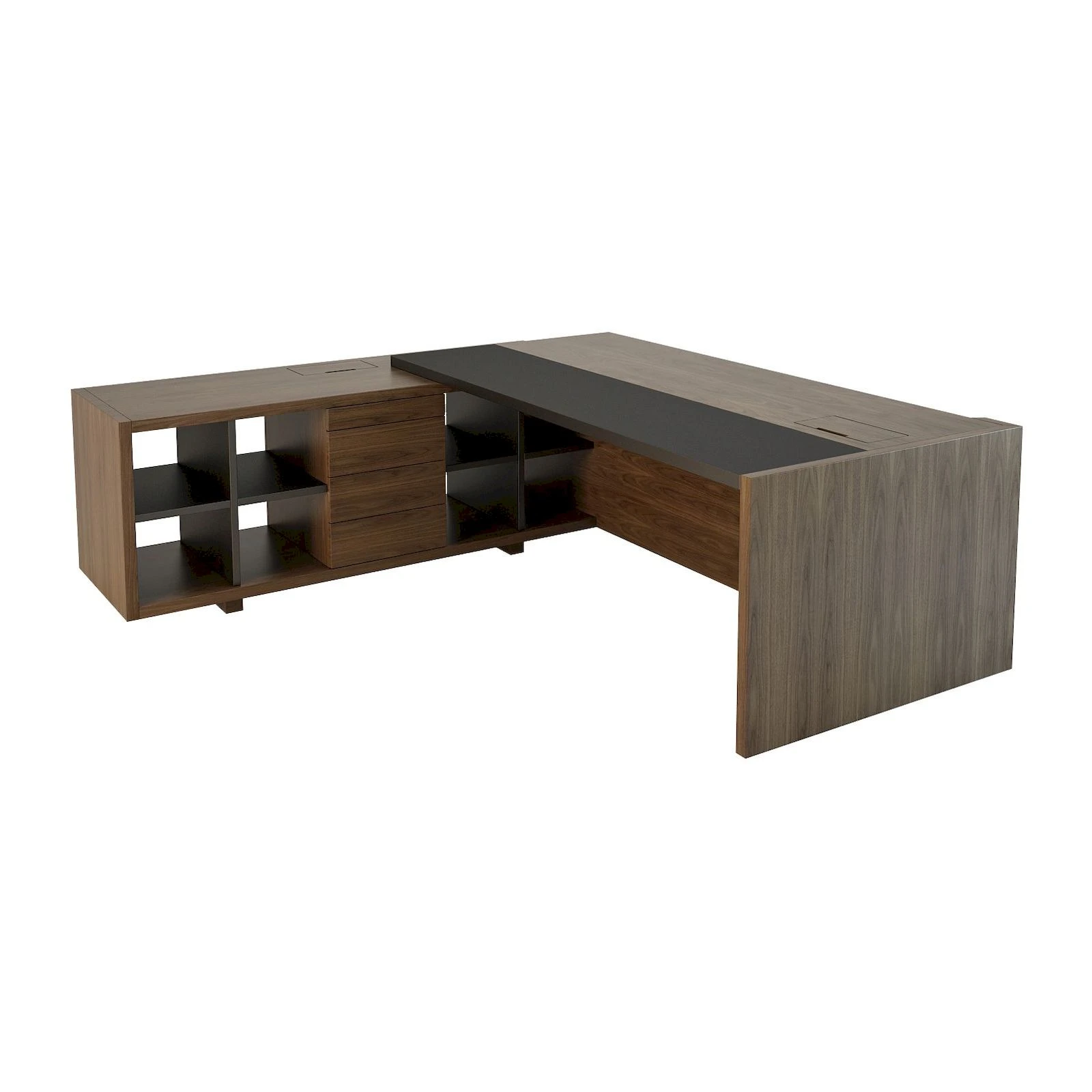 Стол руководителя с модулем полуглянцевый/лакированный, кожа, левый 2140х2265х750 Freeport